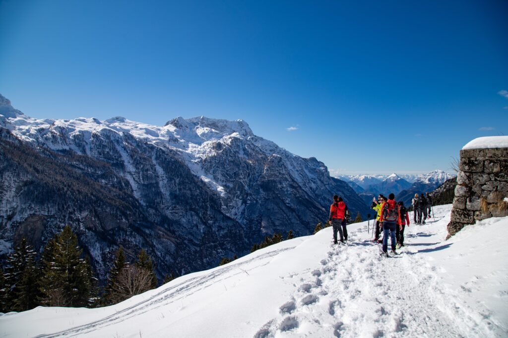 Un facile percorso sull’Altopiano del Montasio, in un paesaggio fiabesco sotto gli Jôfs tra ampie distese immacolate e suggestive malghe con uno straordinario colpo d’occhio sulla catena del Canin. Indicato a coloro che desiderano iniziare l’esperienza di camminare con le racchette da neve, immersi nel silenzio e nella bellezza incontaminata della montagna invernale.