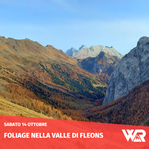 Partendo dalla cava di Pierabech, saliremo prima nel rosso dei faggi ma una volta superata la stretta di Fleons entreremo nell’omonima valle, dove ad aspettarci ci sarà una magnifica foresta di larici e abeti.