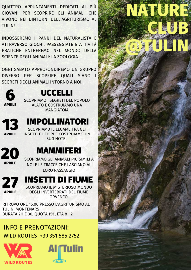 Quattro appuntamenti dedicati ai più giovani per scoprire gli animali che vivono nei dintorni dell’agriturismo al Tulin! Indosseremo i panni del naturalista e attraverso giochi, passeggiate e attività pratiche entreremo nel mondo della scienze degli animali: la zoologia